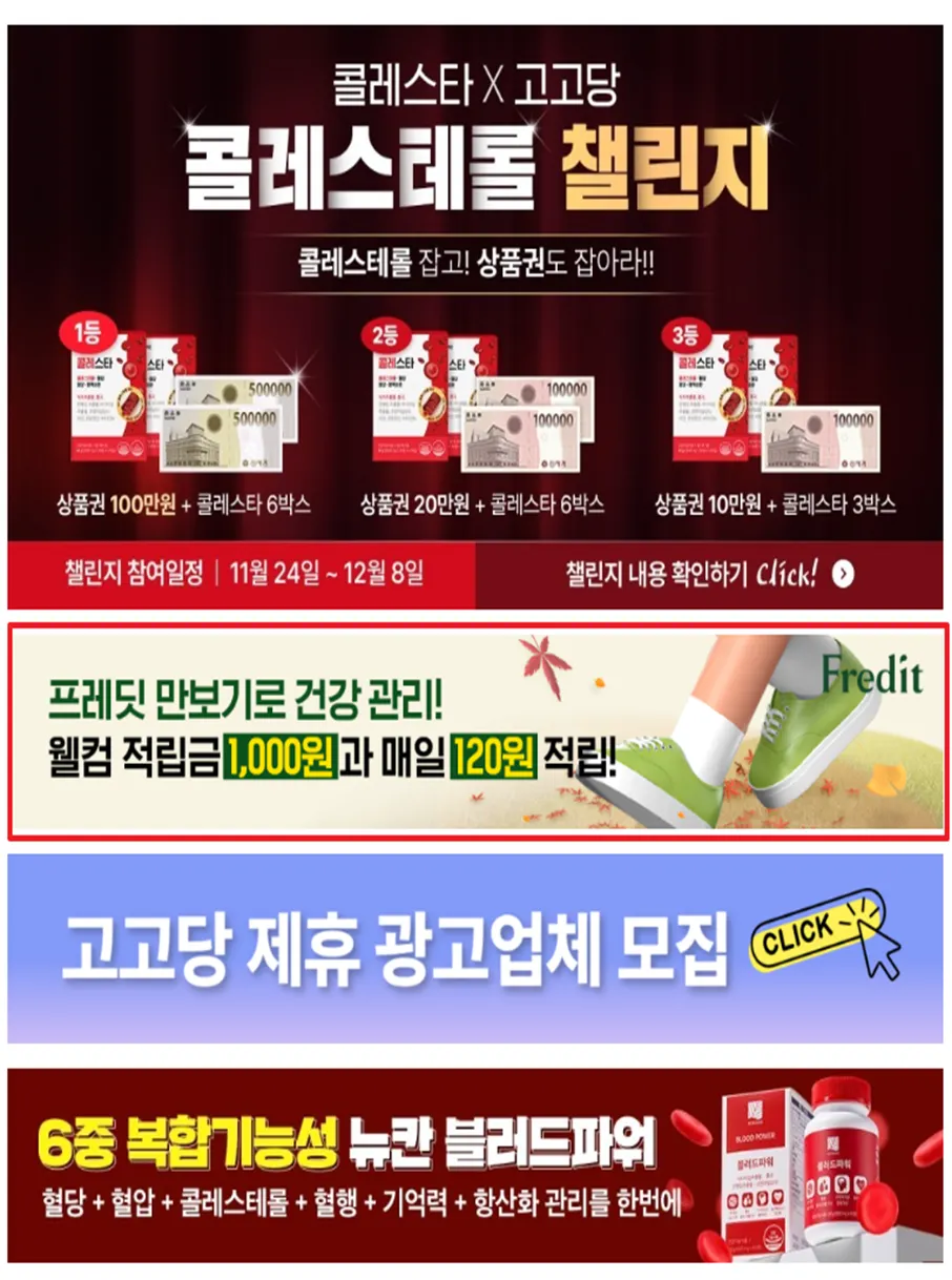 특정 게시판 내 상단 공지 게시글을 통해 광고를 노출합니다.