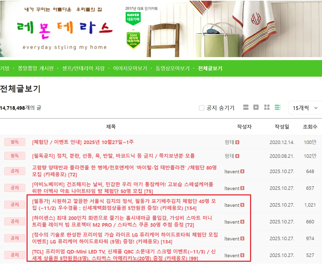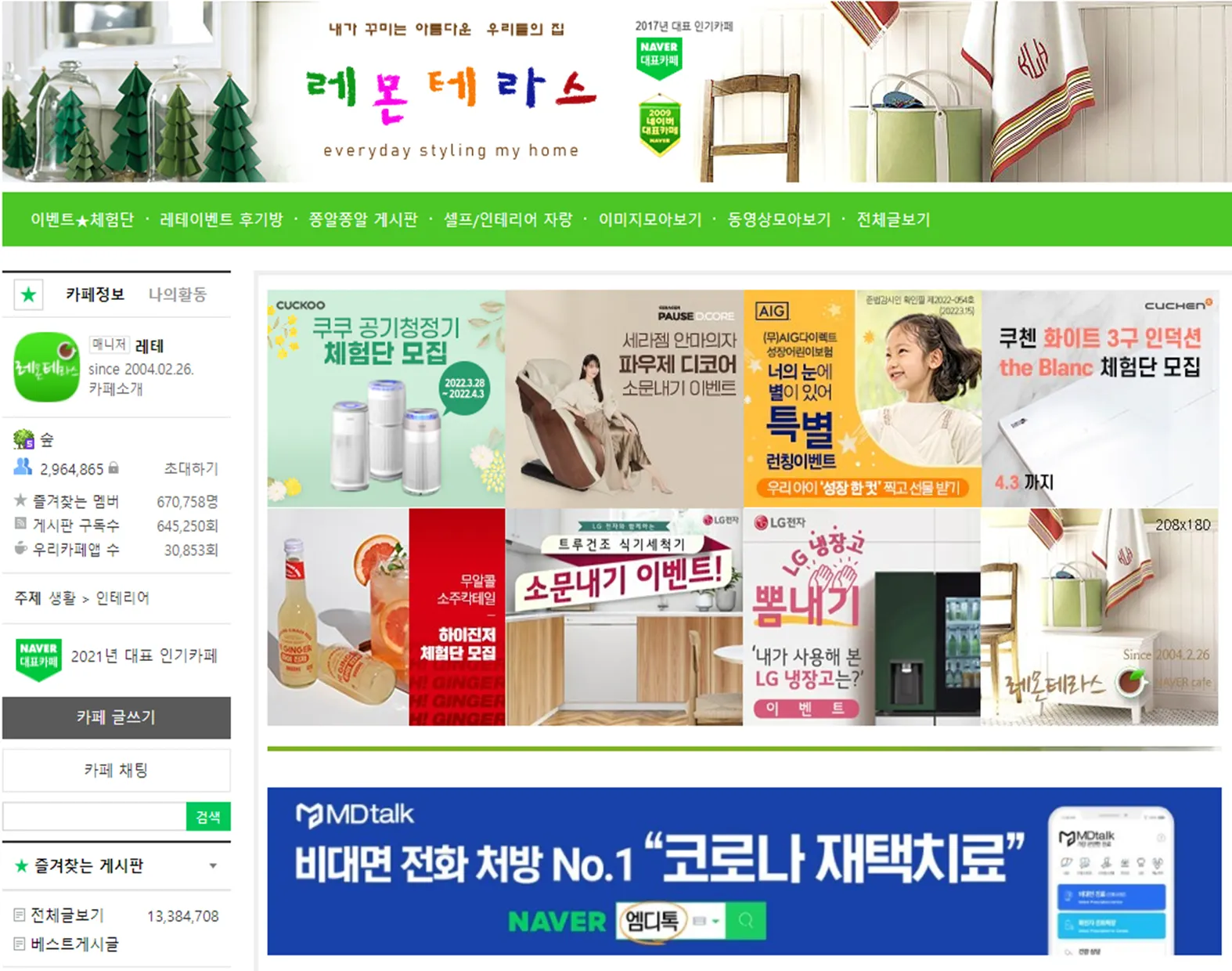 특징 | - 카페 접속 시 가장 먼저 보이는 위치