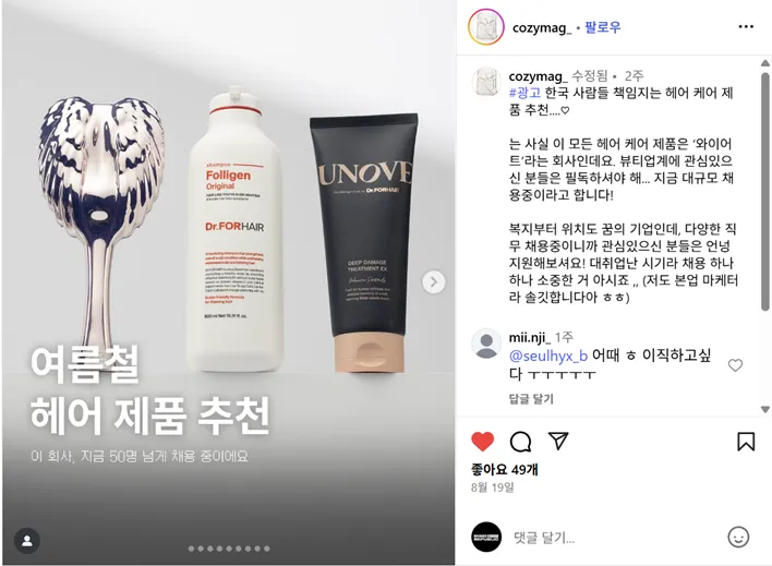 브랜드의 제품이나 서비스가 담긴 콘텐츠를 영향력 있는 외부 SNS 페이지에 업로드하여 효과적으로 홍보합니다.